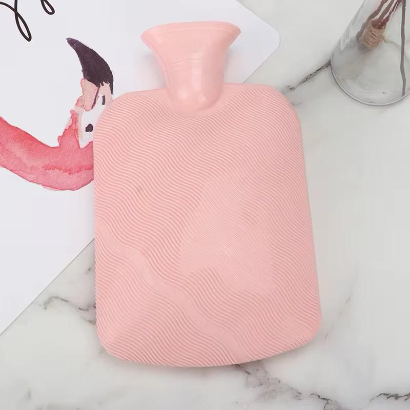 These hot water bottles feature a modern, pastel aesthetic available blush pink and baby blue giving them a calming and cozy look. The wave-patterned textured front provides even heat distribution, while the wide-mouth opening ensures easy and safe filling. The cap is designed for a secure, leak-proof seal so users can enjoy long-lasting warmth without worry.